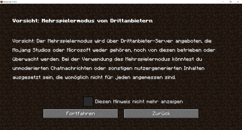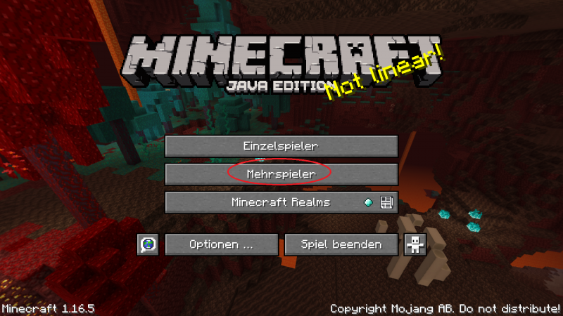 Dort einfach einmal auf Spielen klicken. Das Fenster schließt sich jetzt kurz. Nach kurzer Zeit öffnet sich das Mojang-Logo mit dem Ladebalken und dann kommt ihr ins Spiel. Dort klickt ihr auf Mehrspieler.